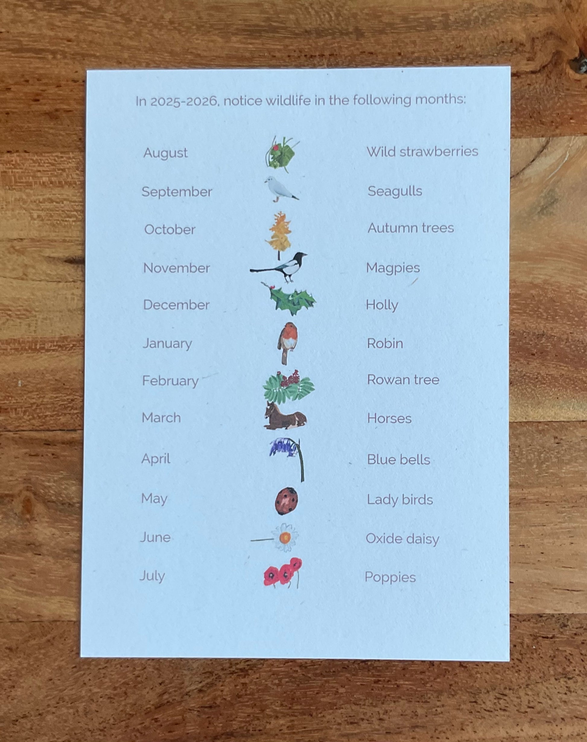 - ethically certified decorative solid wood stand (10 x 3 x 2 cm) - ✍️ Each card features unique hand-drawn illustrations inspired by nature as well as a monthly checklist of nature to look out for.