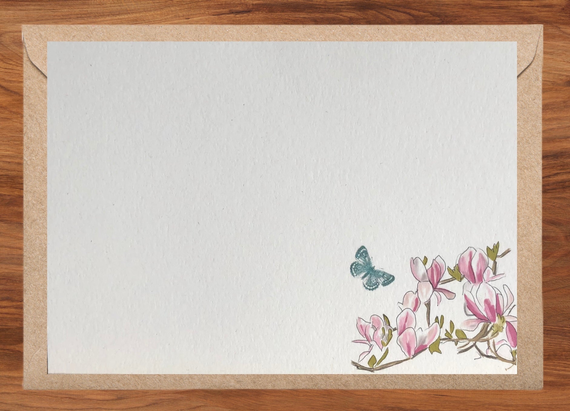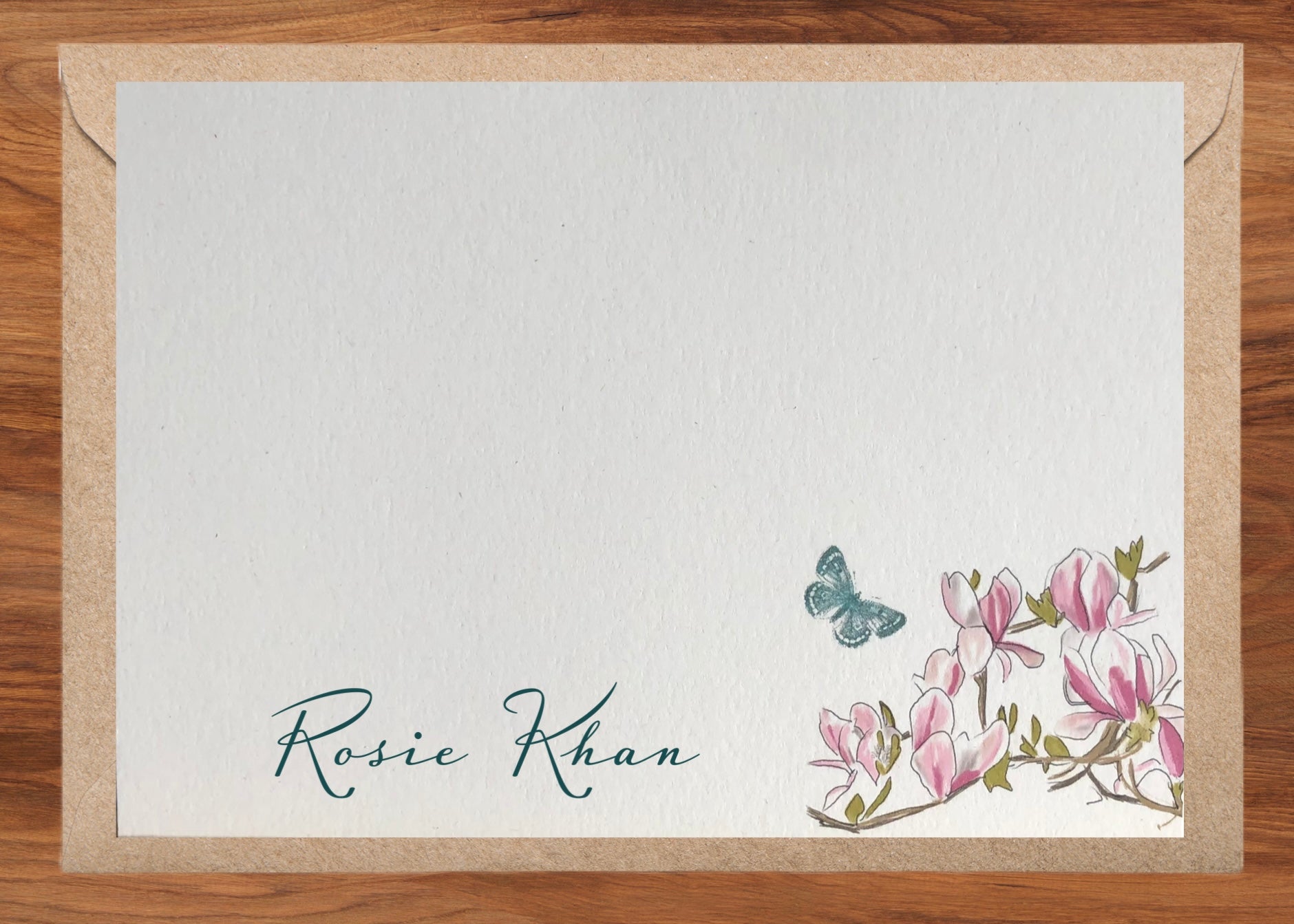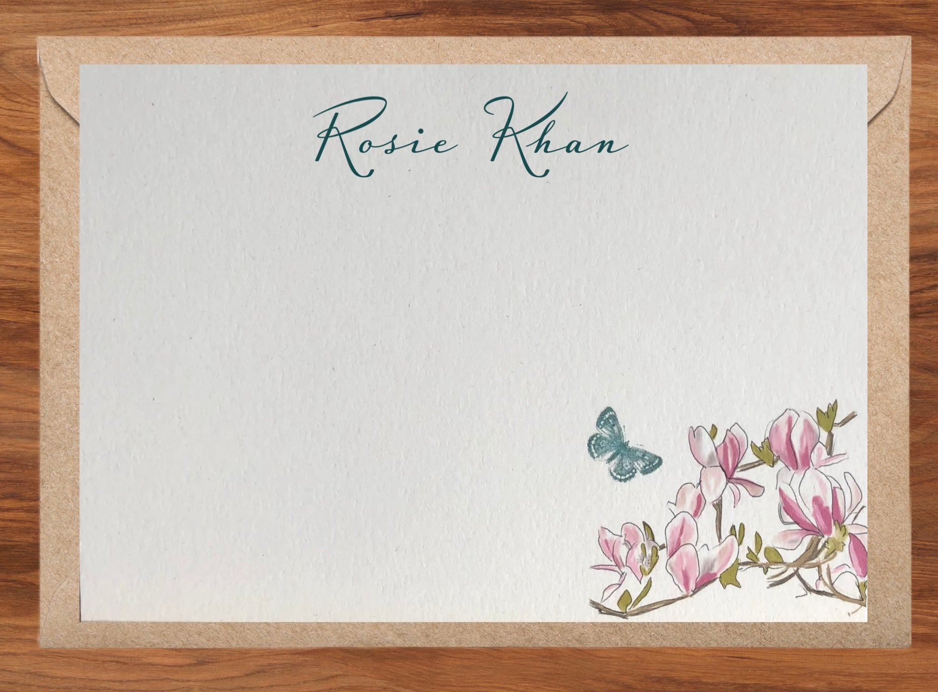 These beautiful hand drawn double sided magnolia note cards are perfect to brighten a friend, family member or client’s day. Take advantage of our 6 set offer saving you £4.51 overall. Personalisation with your monogram or name is available. When writing your name or monogram, please state the position. There are two available: top centre or the bottom.